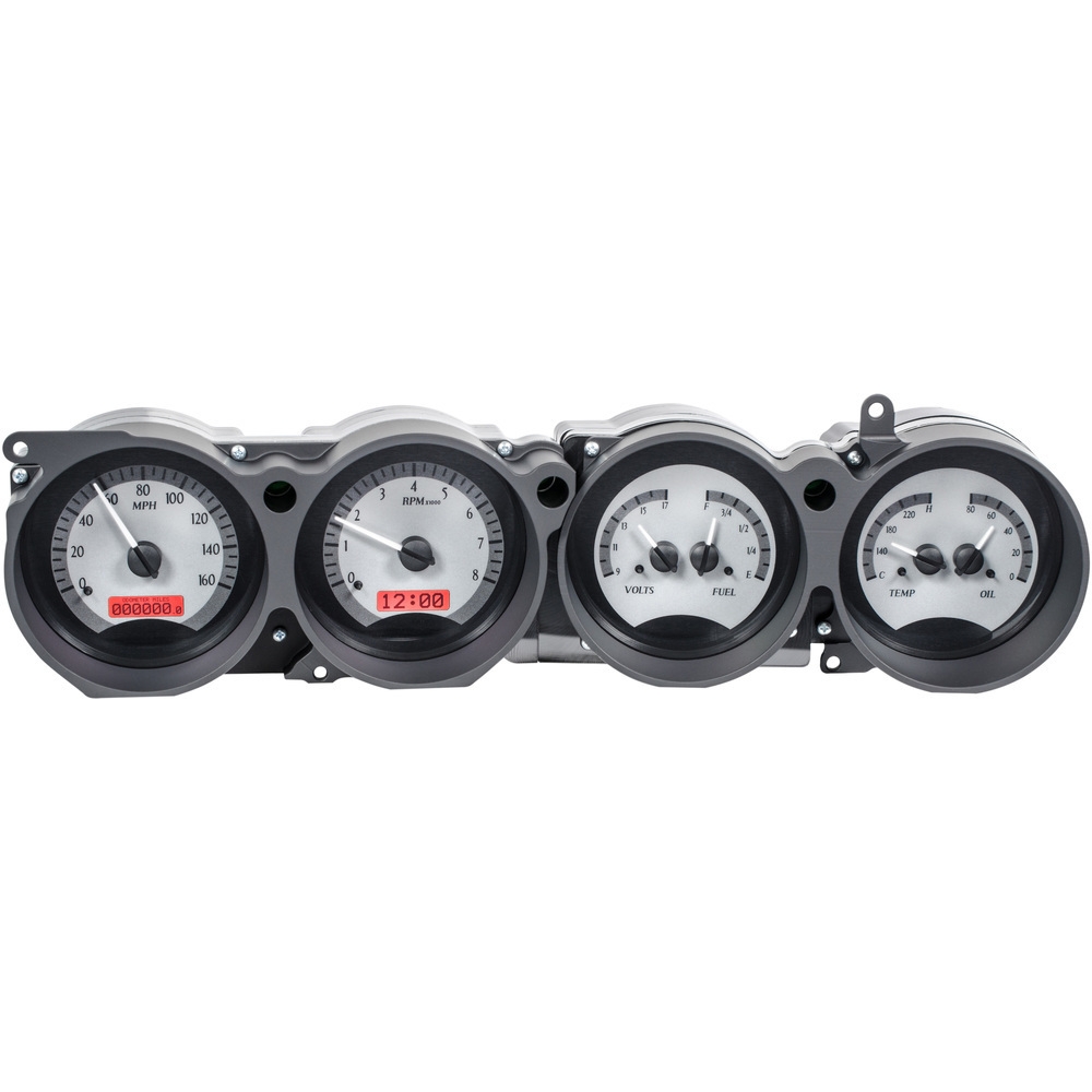 This Dakota Digital VHX gauge kit fits directly into the stock instrument bezel of a 1970-1974 Dodge Challenger and 1970-1974 Plymouth 'Cuda with Rallye dash without modification, adding a wealth of features and information to this iconic vehicle.