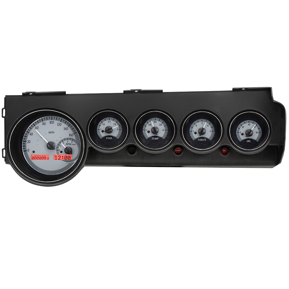 This Dakota Digital gauge kit brings VHX technology to the “non-rallye” dash cars. Included hardware accommodates the early “stepped” front bezel as well as the later “flat’ design. Either way, your Challenger or ‘Cuda will enjoy twin LCD message centers flanked by six analog readings, built-in LED indicators and easy EFI integration (with BIM-01-2, sold separately).