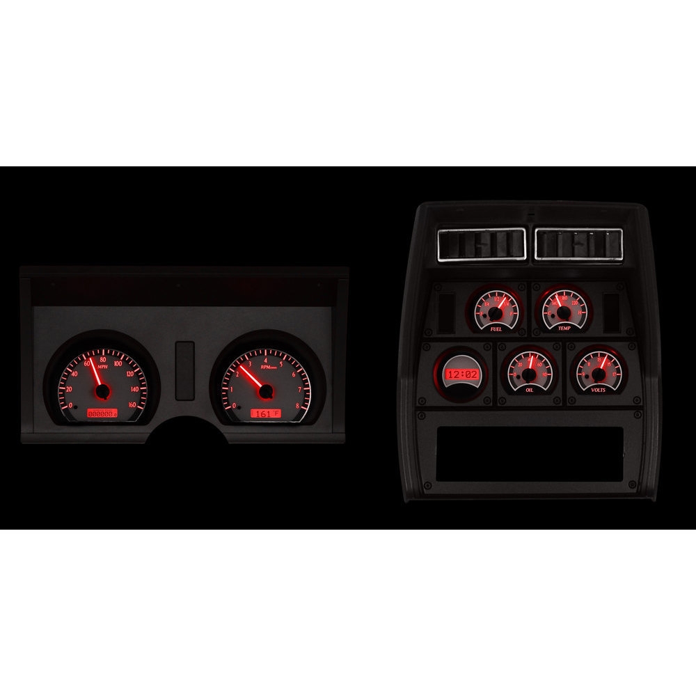 Dakota Digital VHX Systems fit directly into the stock instrument dash of a 1978-82 Chevy Corvette without modification, adding a wealth of features to this iconic vehicle. Speedometer and Tachometer gauge housing has been completely replicated in billet aluminum, powdercoated in a flat black to keep the original theme.Oil Pressure, Water Temperature, Voltmeter, Fuel Level and an additional LCD Clock and Message Center attach directly to the back side of the stock center console bezel.