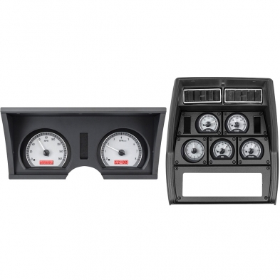 Dakota Digital VHX Systems fit directly into the stock instrument dash of a 1978-82 Chevy Corvette without modification, adding a wealth of features to this iconic vehicle. Speedometer and Tachometer gauge housing has been completely replicated in billet aluminum, powdercoated in a flat black to keep the original theme.Oil Pressure, Water Temperature, Voltmeter, Fuel Level and analog Clock attach directly to the back side of the stock center console bezel.