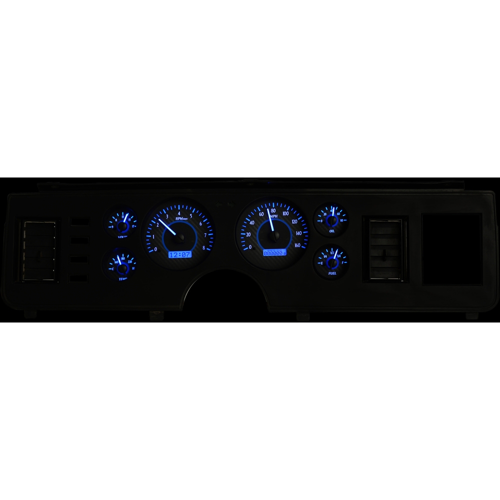 1979-86 Mustang VHX Gauge Kit - Carbon Fiber/Blue