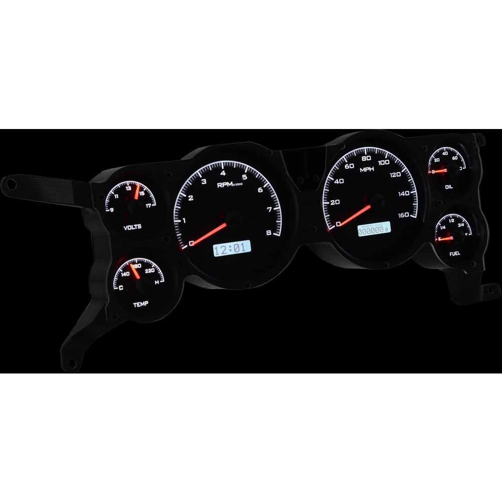 Fully lit needles, backlit faces, and highly visible LCD message centers are a few of the things that you can see which set the VHX Series apart from yesterday’s traditional approach to instrumentation. A few of the features which you don’t normally see are the micro-controlled precision stepper motors, solid state sensors for unparalleled accuracy, and user-customizable display feedback, all supported by an unrivaled limited lifetime warranty which has become the standard for Dakota Digital instrumentation systems . Completely engineered and manufactured by Dakota Digital in Sioux Falls, South Dakota, the VHX Series has completely revolutionized the instrumentation industry!