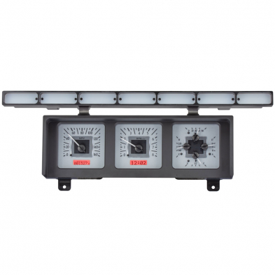 This Dakota Digital VHX gauge kit is designed to fit into the stock instrument bezel of a 1980-86 Ford Truck and Bronco. This 6-gauge system includes a new, fully-machined rear gauge housing, overlaid by the stock trim bezel. The OEM cluster/front bezel includes an array of indicator lamps; the VHX kit will replicate this area and convert this lighting to LED, while retaining the stock front indicator lenses. Our normal color schemes of Silver Alloy/Black Alloy face styles while Red, White or Blue backlight options exist. Fully lit needles, backlit faces, and highly visible LCD message centers are a few of the things that you can see which set the VHX Series apart from yesterday’s traditional approach to instrumentation. A few of the features which you don’t normally see are the micro-controlled precision stepper motors, solid state sensors for unparalleled accuracy, and user-customizable display feedback, all supported by an unrivaled limited lifetime warranty which has become the standard for Dakota Digital gauges . Completely engineered and manufactured in Sioux Falls, South Dakota, the VHX Series has completely revolutionized the instrumentation industry!