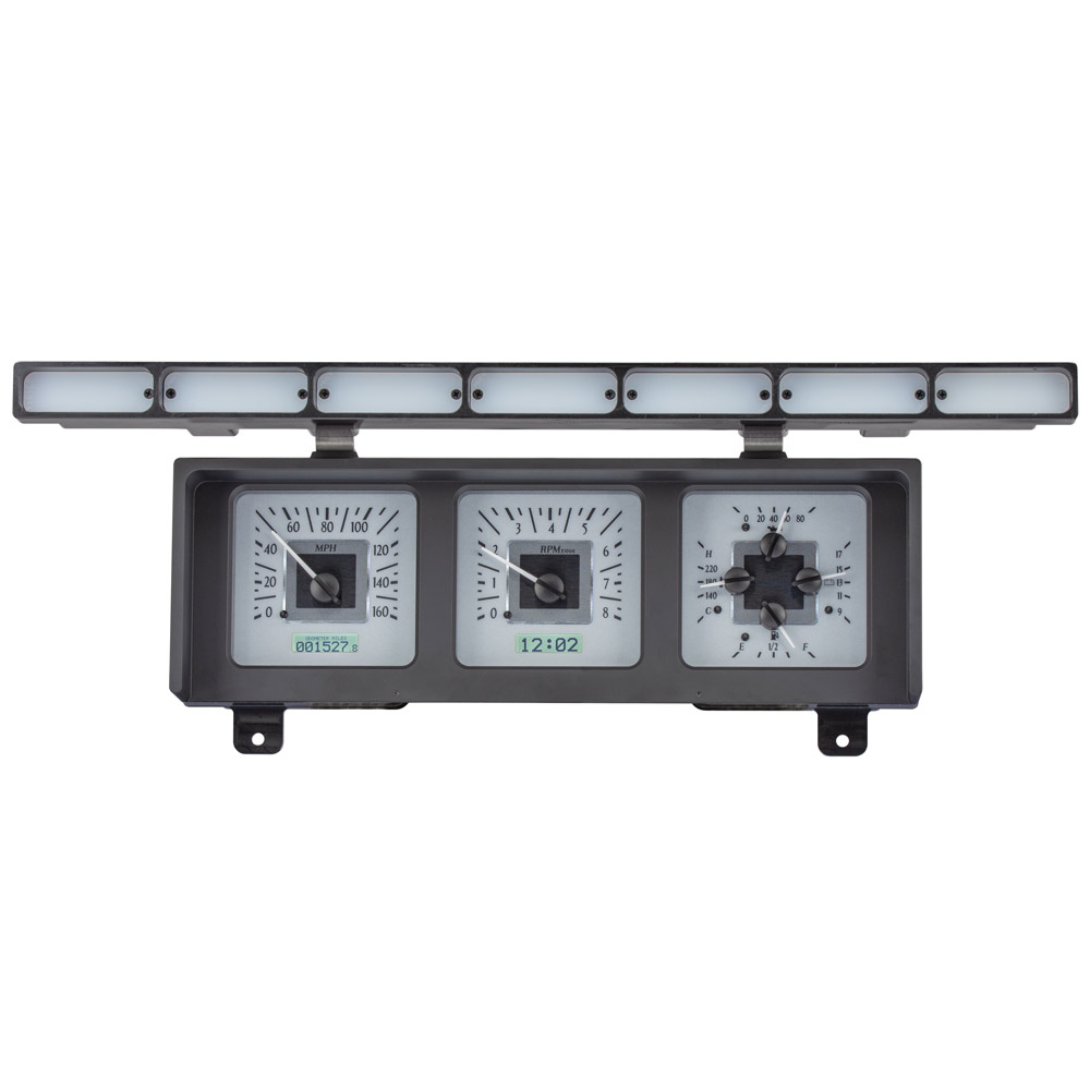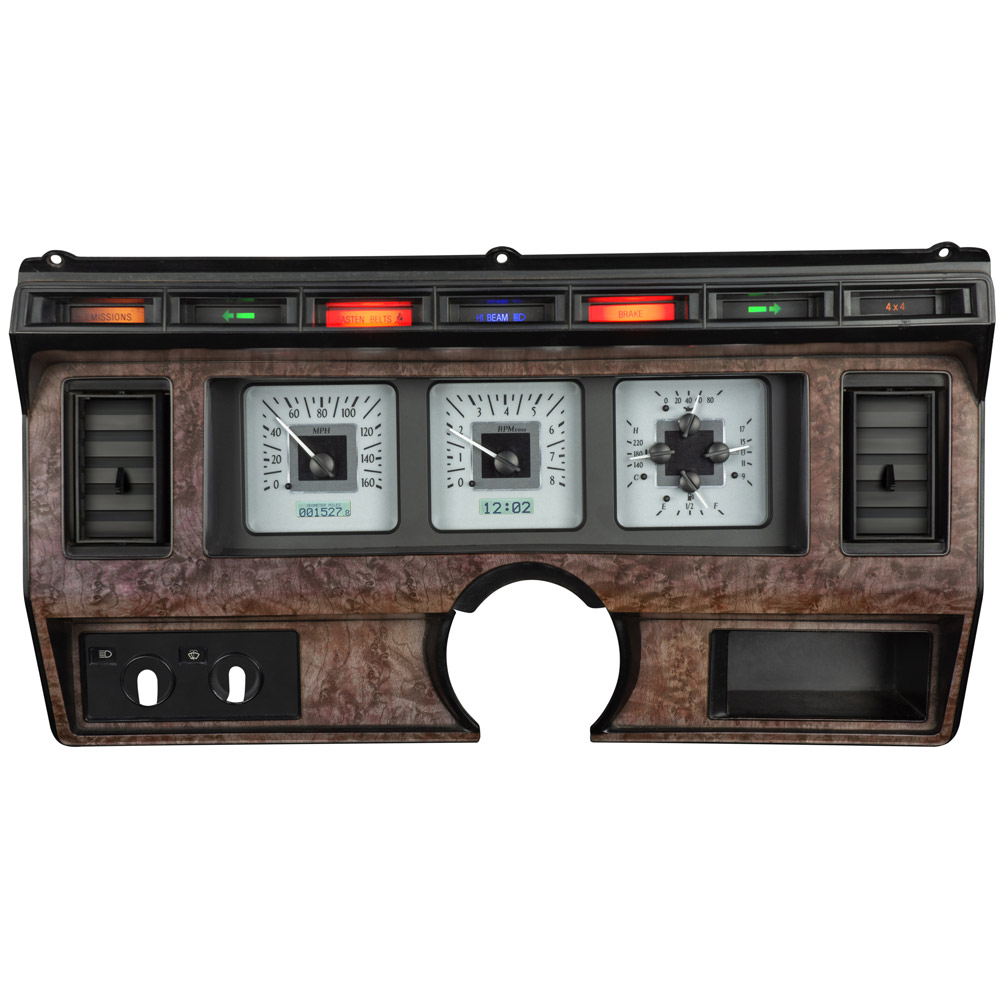 This Dakota Digital VHX gauge kit is designed to fit into the stock instrument bezel of a 1980-86 Ford Truck and Bronco. This 6-gauge system includes a new, fully-machined rear gauge housing, overlaid by the stock trim bezel. The OEM cluster/front bezel includes an array of indicator lamps; the VHX kit will replicate this area and convert this lighting to LED, while retaining the stock front indicator lenses. Our normal color schemes of Silver Alloy/Black Alloy face styles while Red, White or Blue backlight options exist. Fully lit needles, backlit faces, and highly visible LCD message centers are a few of the things that you can see which set the VHX Series apart from yesterday’s traditional approach to instrumentation. A few of the features which you don’t normally see are the micro-controlled precision stepper motors, solid state sensors for unparalleled accuracy, and user-customizable display feedback, all supported by an unrivaled limited lifetime warranty which has become the standard for Dakota Digital gauges . Completely engineered and manufactured in Sioux Falls, South Dakota, the VHX Series has completely revolutionized the instrumentation industry!