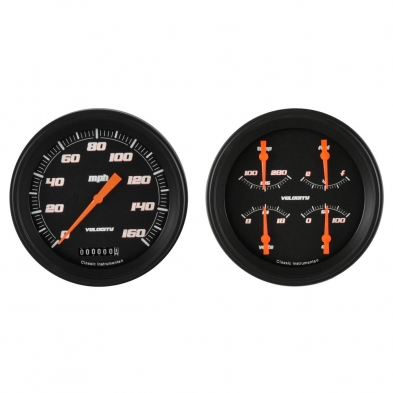 This 2 Gauge Kit Includes Velocity Black Series 3-3/8" Speedometer and Quad Gauge Kit that includes Fuel, Oil, Temp and Volt Gauges with Black Low Step Bezels and Flat Glass Lenses.