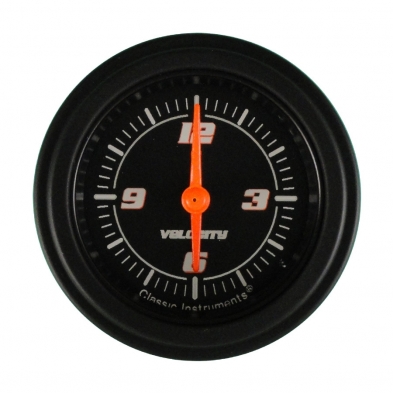 The Velocity Black Series 2-/18" Clock with Black Low Step Bezels and Flat Glass Lenses.