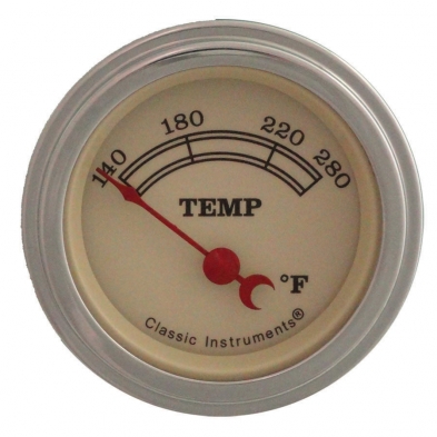 The Vintage Series 2-1/8" Water Temperature Gauge in 140-280 Degree Range with Stainless Low Step Bezel Flat Glass Lens.
