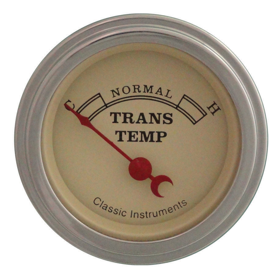 The Vintage Series 2-1/8" Transmission Temperature Gauge with Stainless Low Step Bezel Curved Glass Lens.