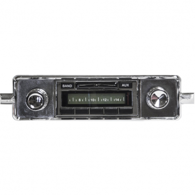 Custom Autosound's USA-230 is an excellent choice for classic car or truck enthusiasts looking for a more affordable radio without sacrificing quality electronics and a classic stereo look. It has been designed to fit in the stock dash without any modifications required. The USA-230 has the same appearance and all of the features offered in our USA-630 model simply without USB port, iPod dock and CD changer control.