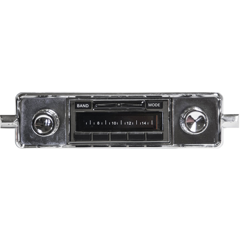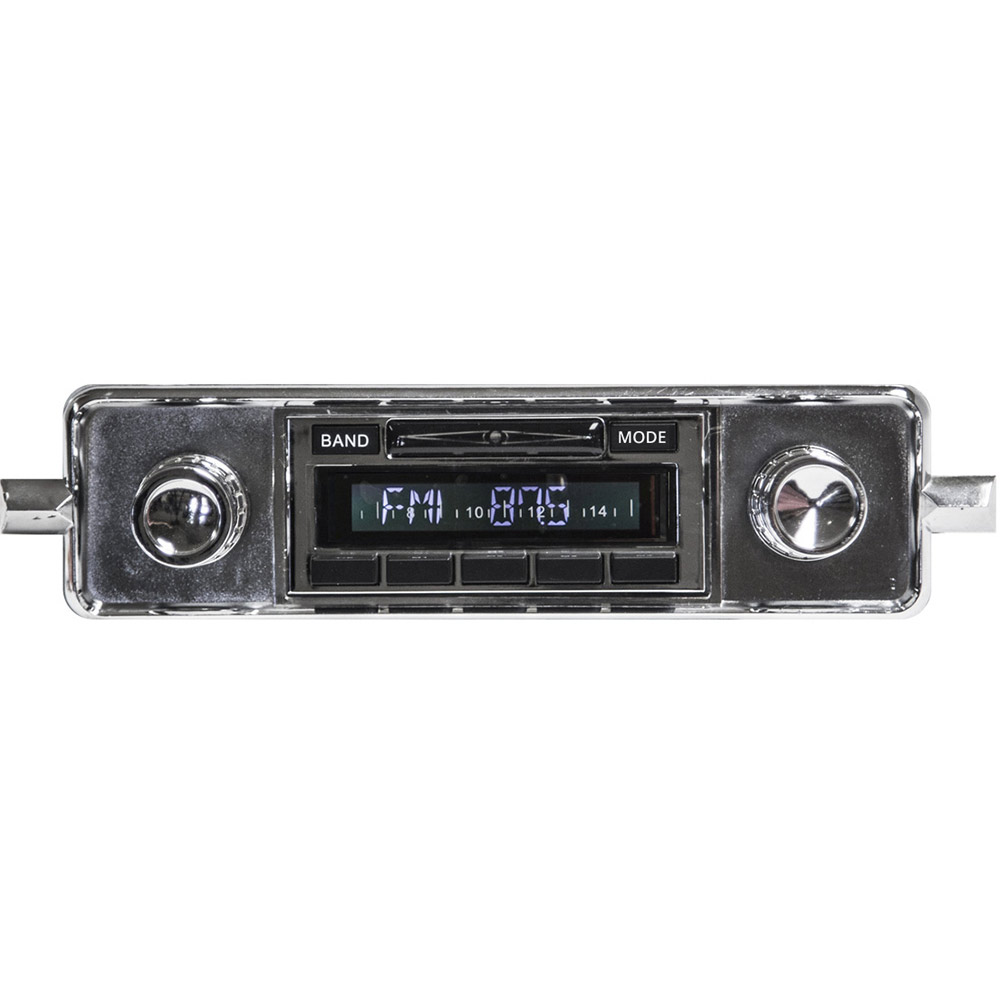 Custom Autosound's USA-630 is designed to provide the best in audio technology wrapped in a classic car stereo look. It will fit your car or truck's stock dash without any modifications required. It has been designed with a bezel containing your car's manufacturer logo as well as large OEM style push-buttons to compliment your dash.