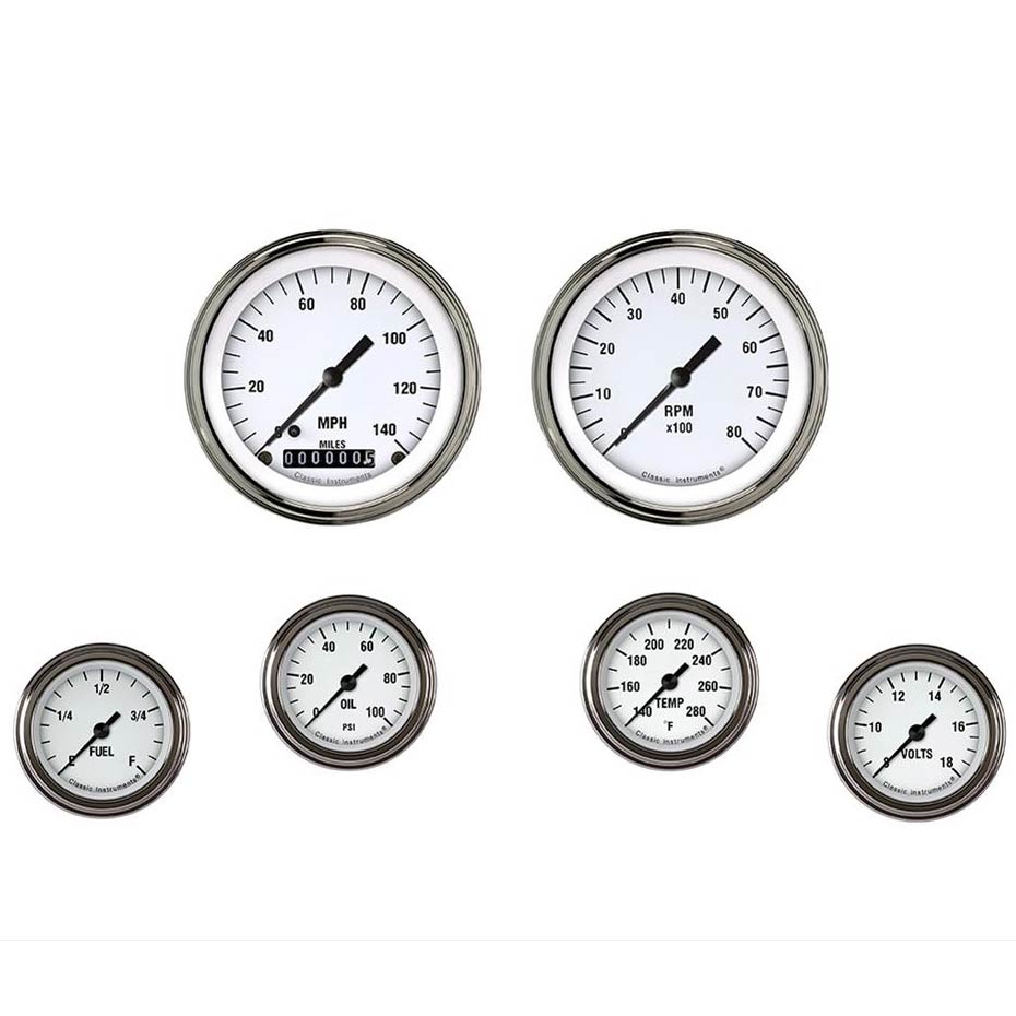 White Hot 6 Gauge Set F/Swp 3-3/8" Speedo & 4 2-1/8"