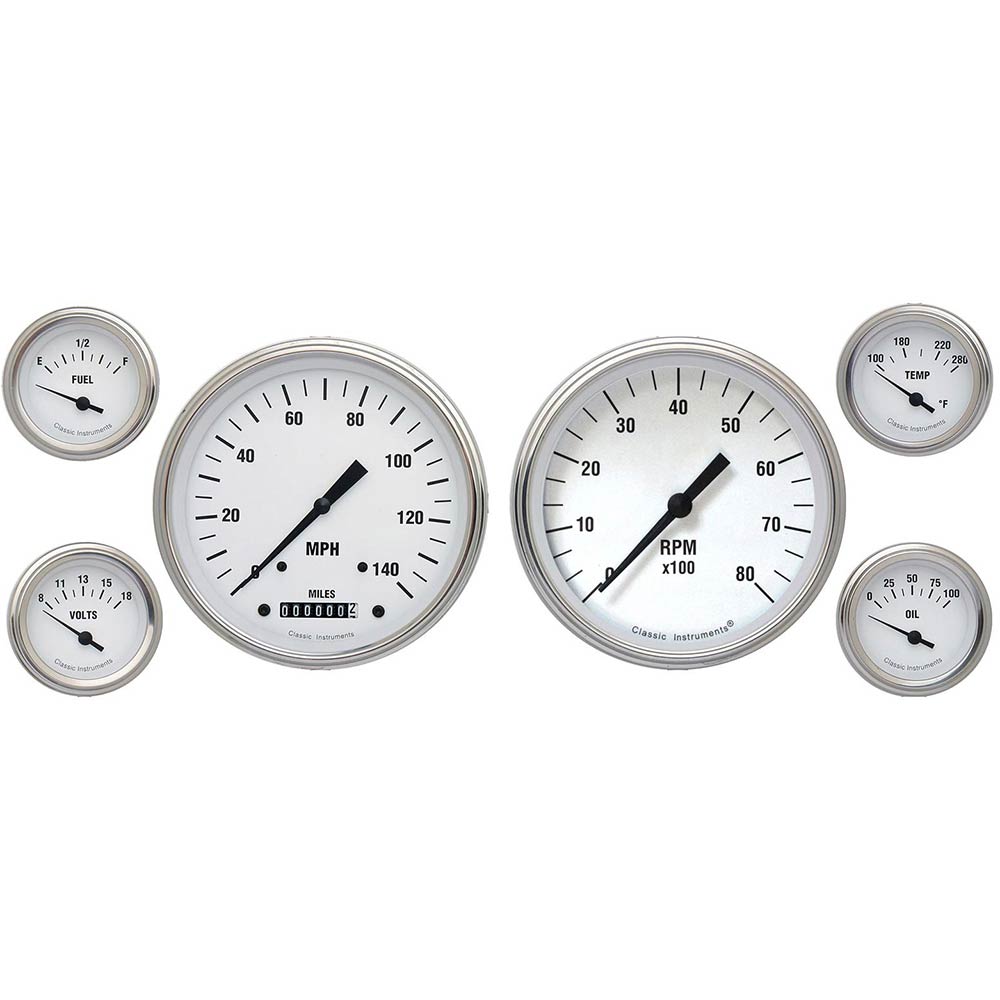 White Hot 6 Gauge Kit 4-5/8" Speedo, Tach & 4 2-1/8" - SLF