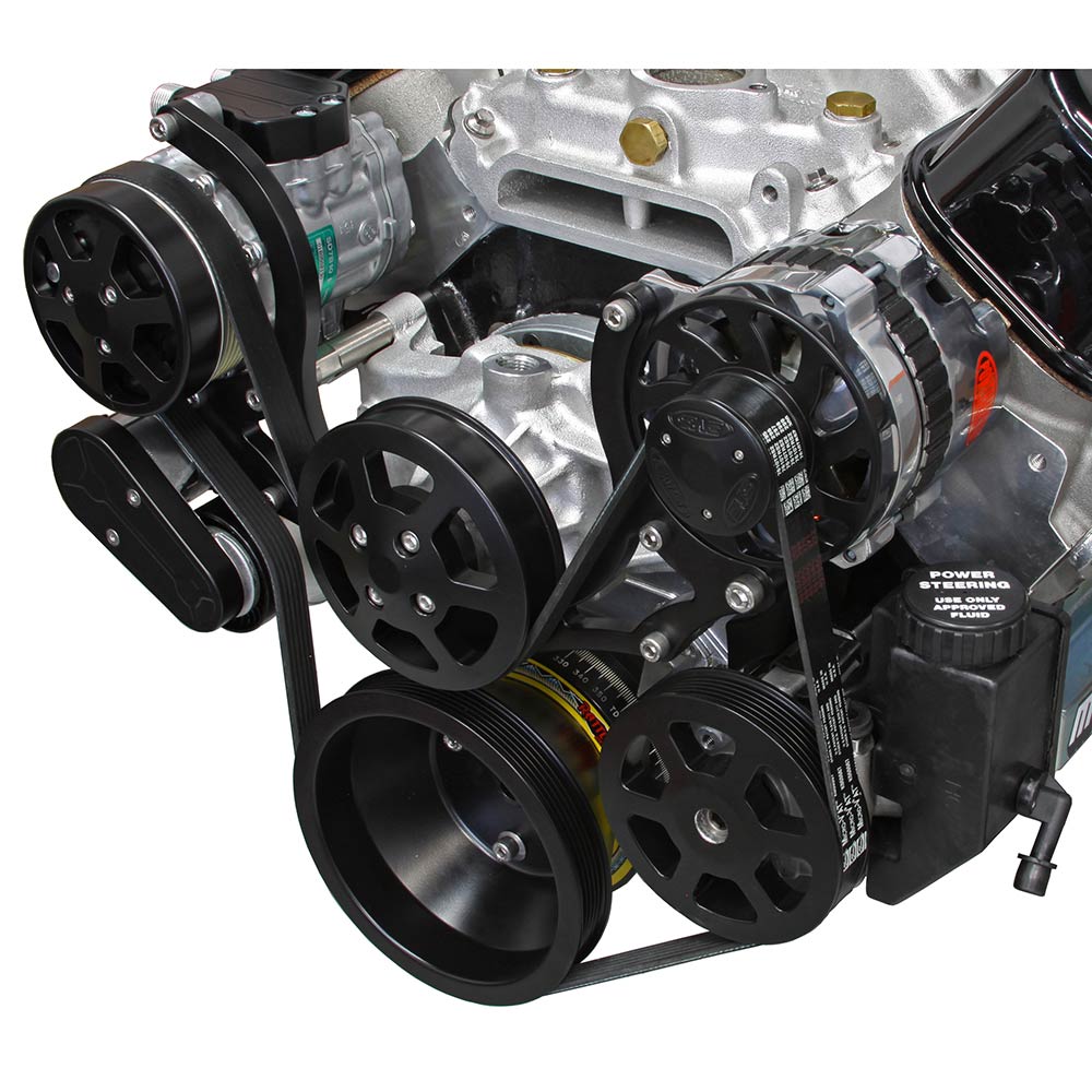 BB Chevy 8-Rib S-Drive Serp Kit w/Plastic Res - Matte Black
