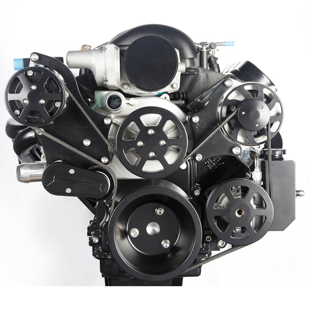 LS 8-Rib S-Drive Serp Kit A/C with Billet Res - Matte Black