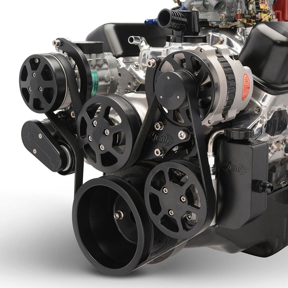 SB Chevy S-Drive Serp Kit w/Billet Reservoir - Matte Black