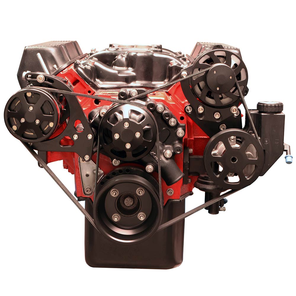 Ford 351C S-Drive Serp Kit w/Plastic Reservoir - Matte Black