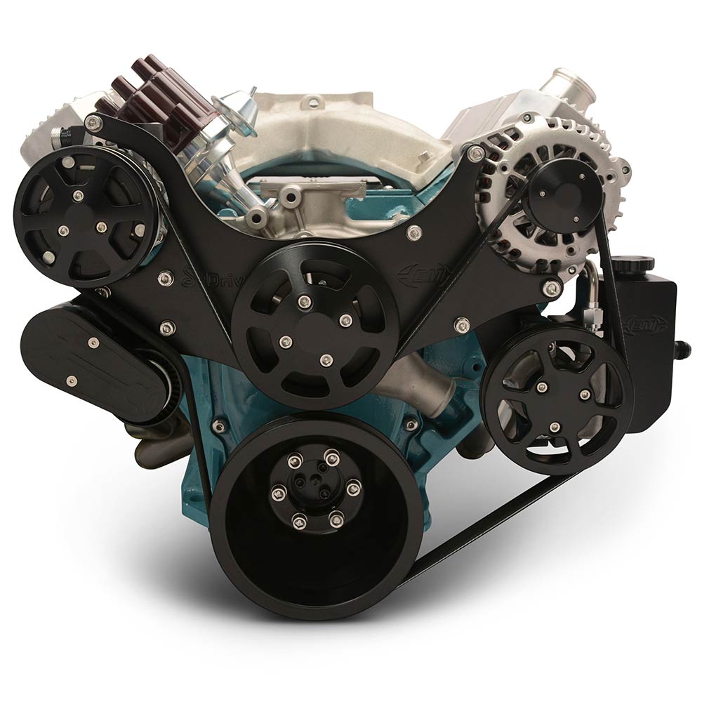 BB Mopar S-Drive Serp Kit w/o A/C w/Billet Res - Matte Black