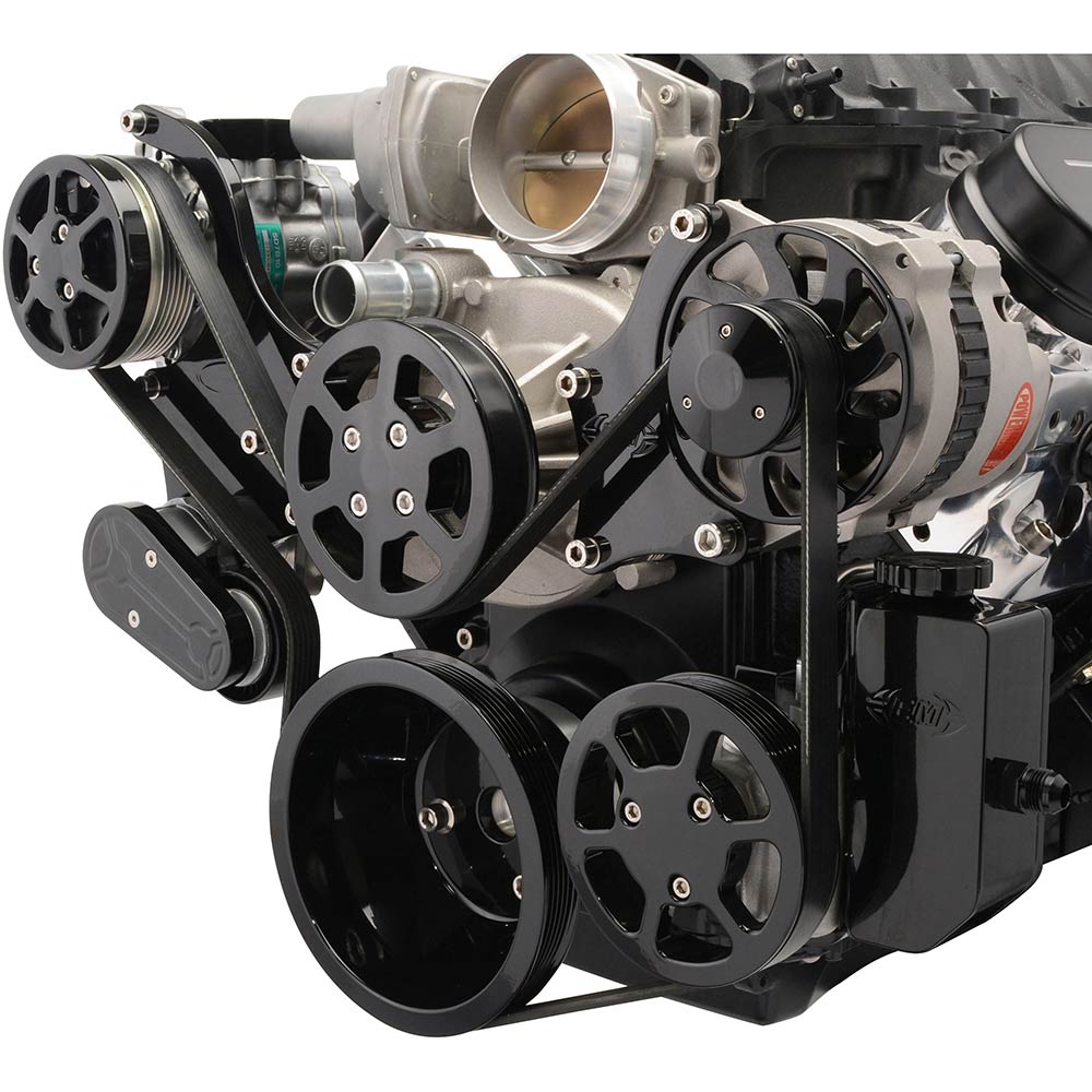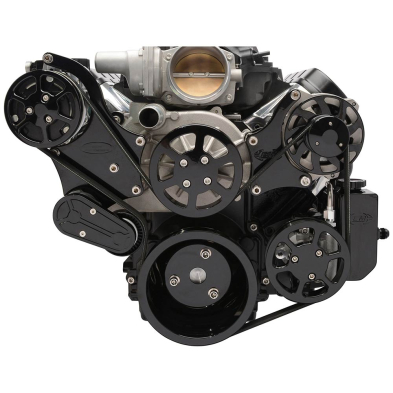 LS Chevy S-Drive 8-Rib Serp Kit w/Billet Res - Gloss Black