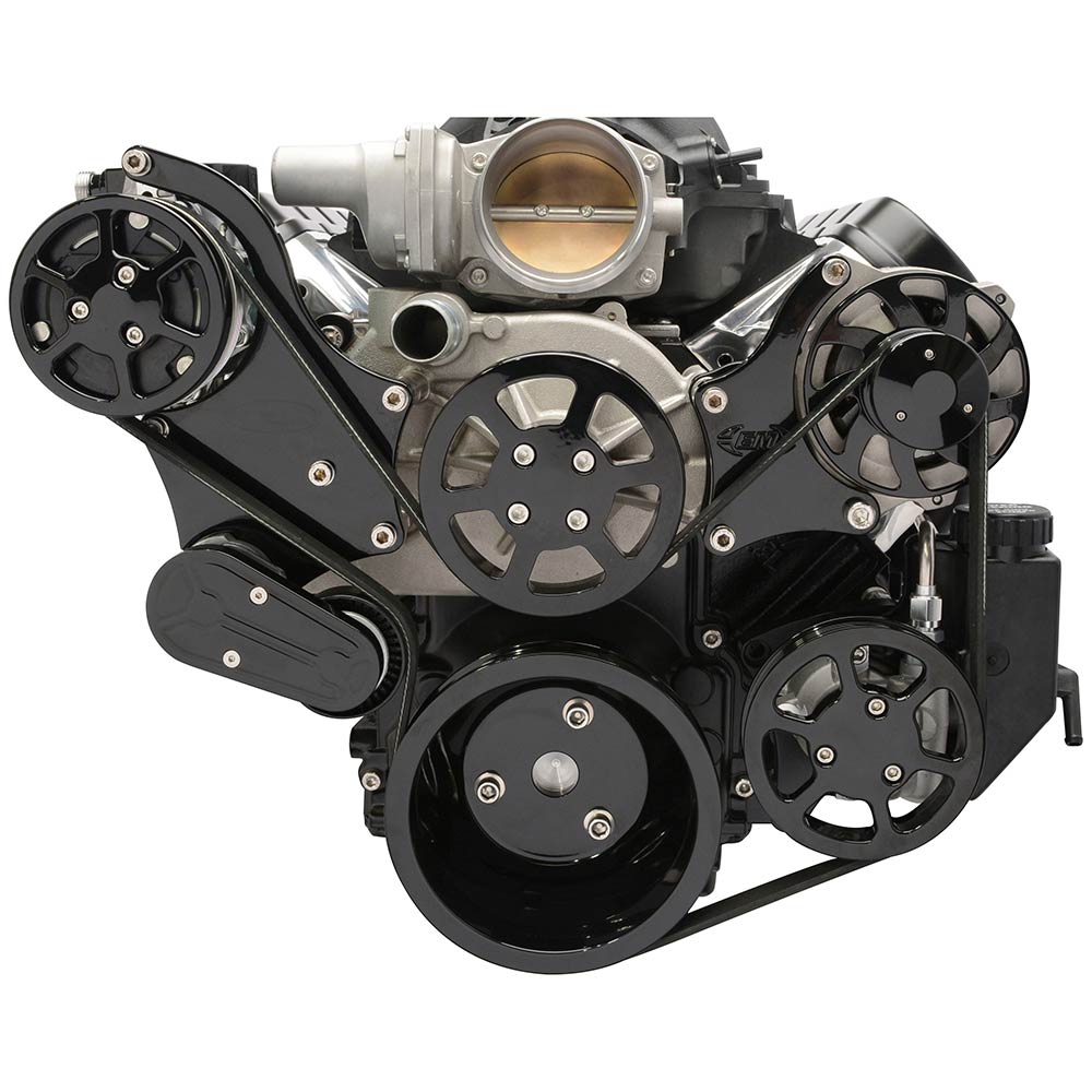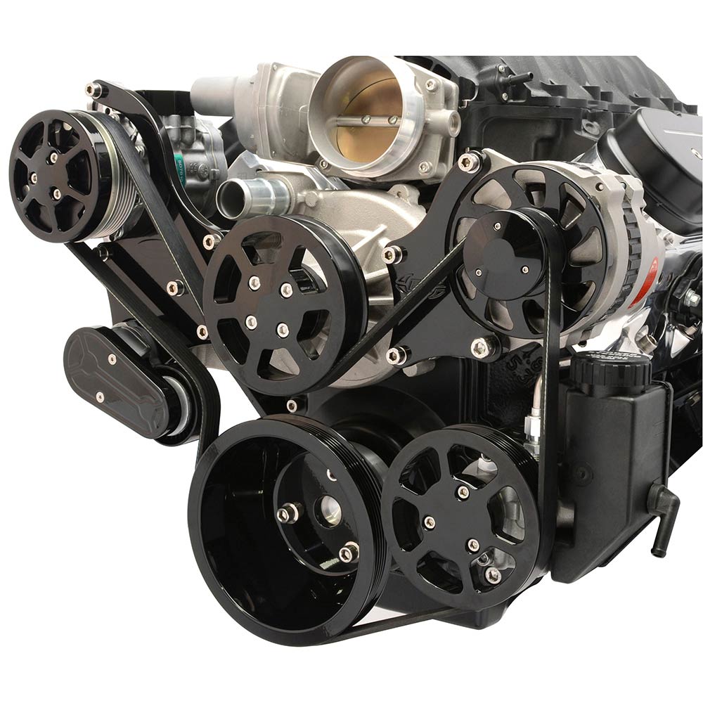 LS Chevy S-Drive 8-Rib Serp Kit w/Plastic Res - Gloss Black