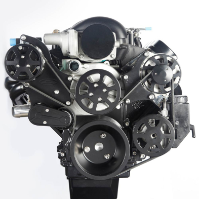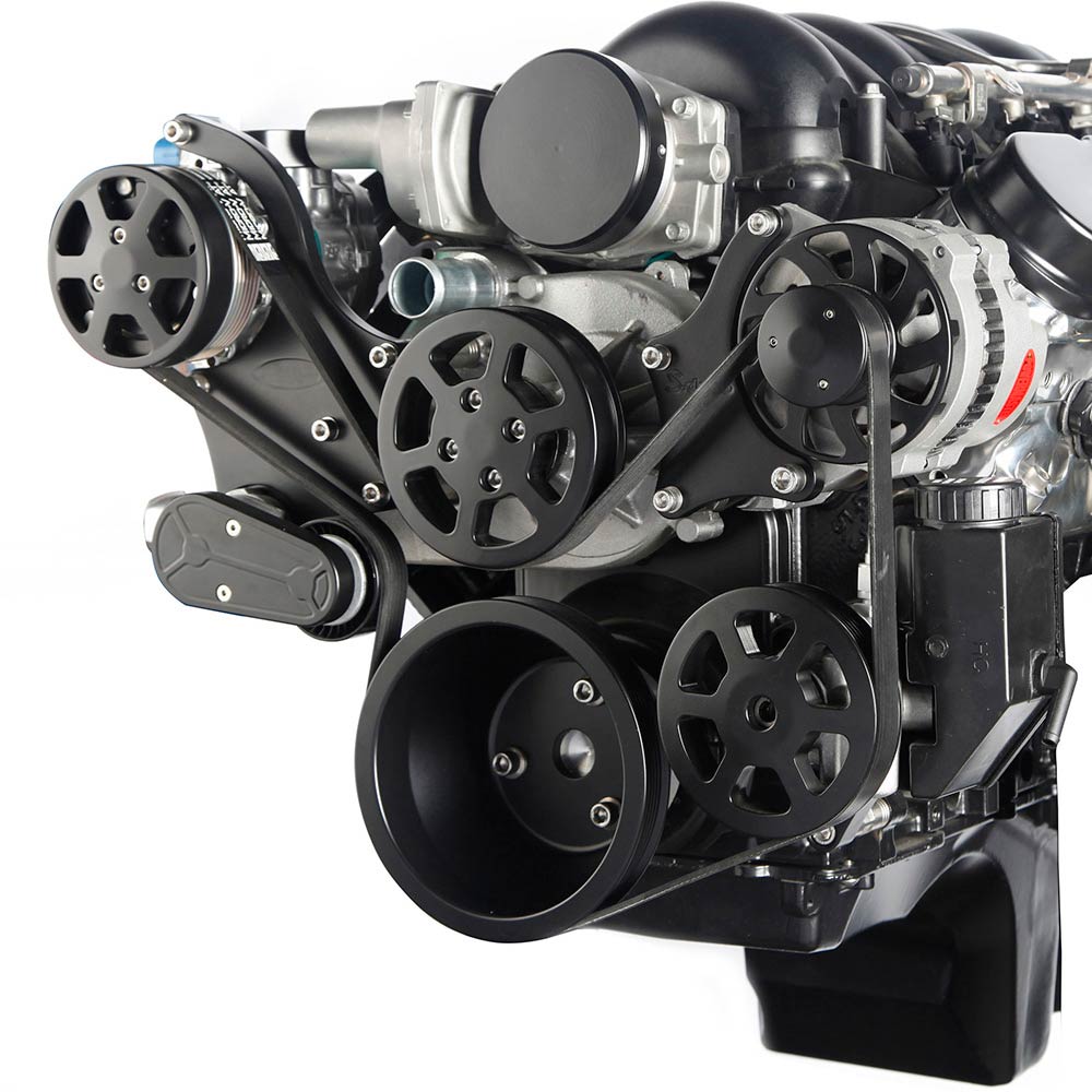 LS Chevy S-Drive 8-Rib Serp Kit w/Plastic Res - Matte Black