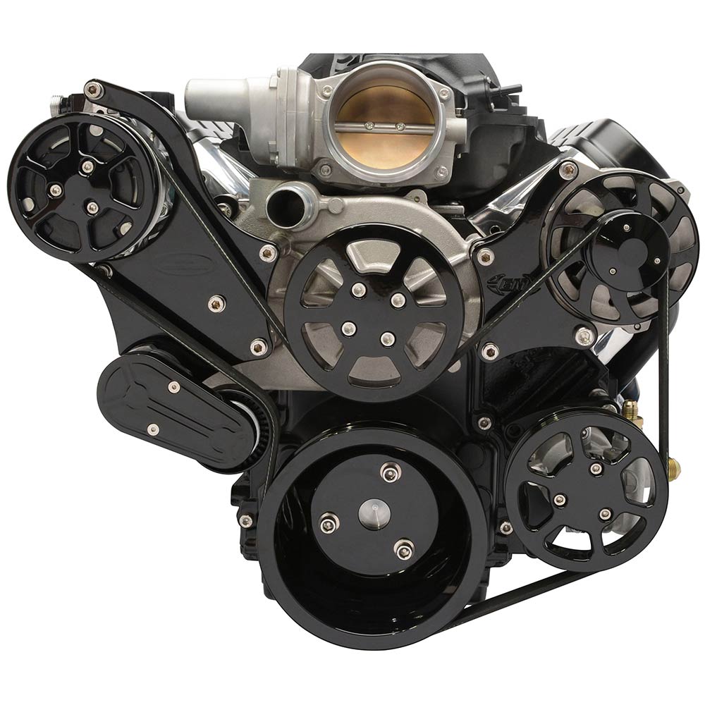 LS Chevy S-Drive 8-Rib Serp Kit for Remote Res - Gloss Black