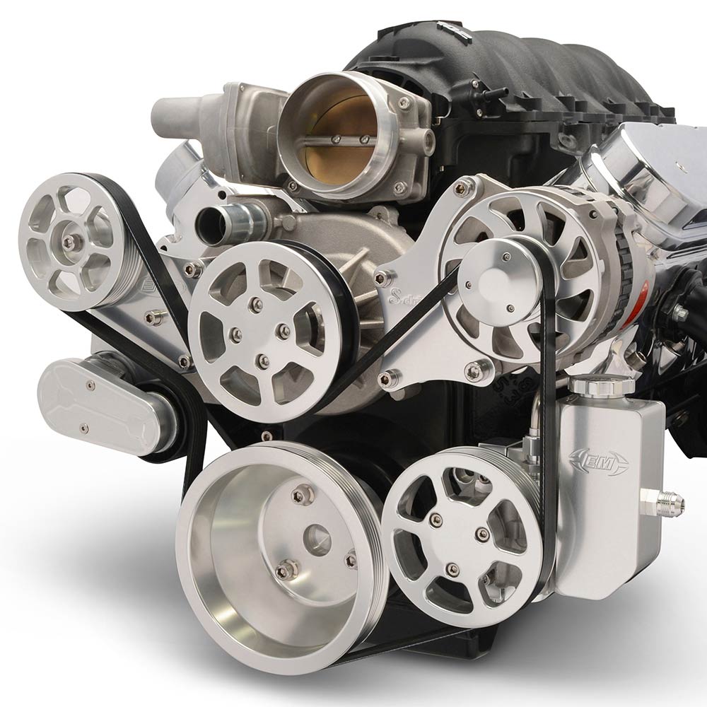Chevy LS S-Drive 8-Rib Serp Kit wo AC w/Billet Res- Clr Anod