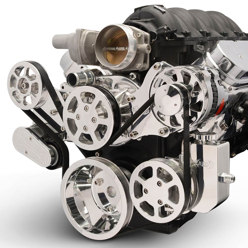 LS Chevy S-Drive 8-Rib Serp Kit w/Billet Res wo A/C - Polish