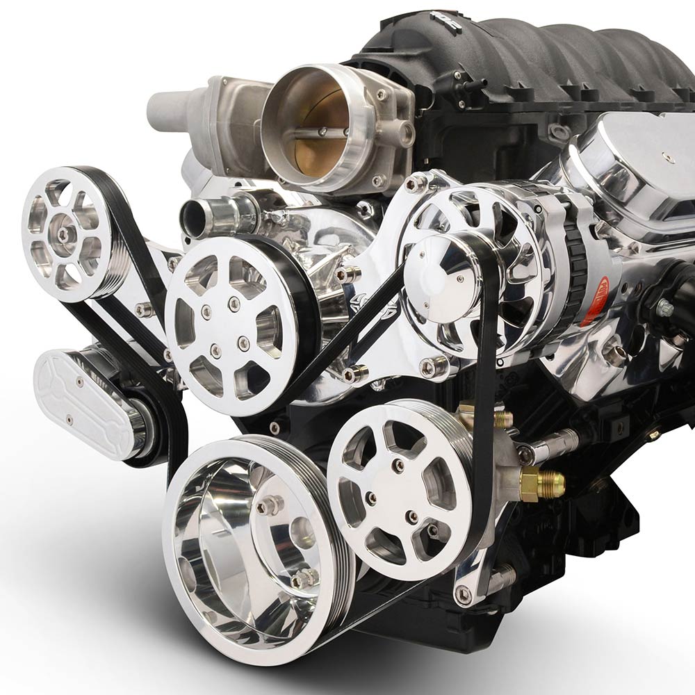 LS Chevy S-Drive 8-Rib Serp Kit wo A/C Remote Res - Clr Coat