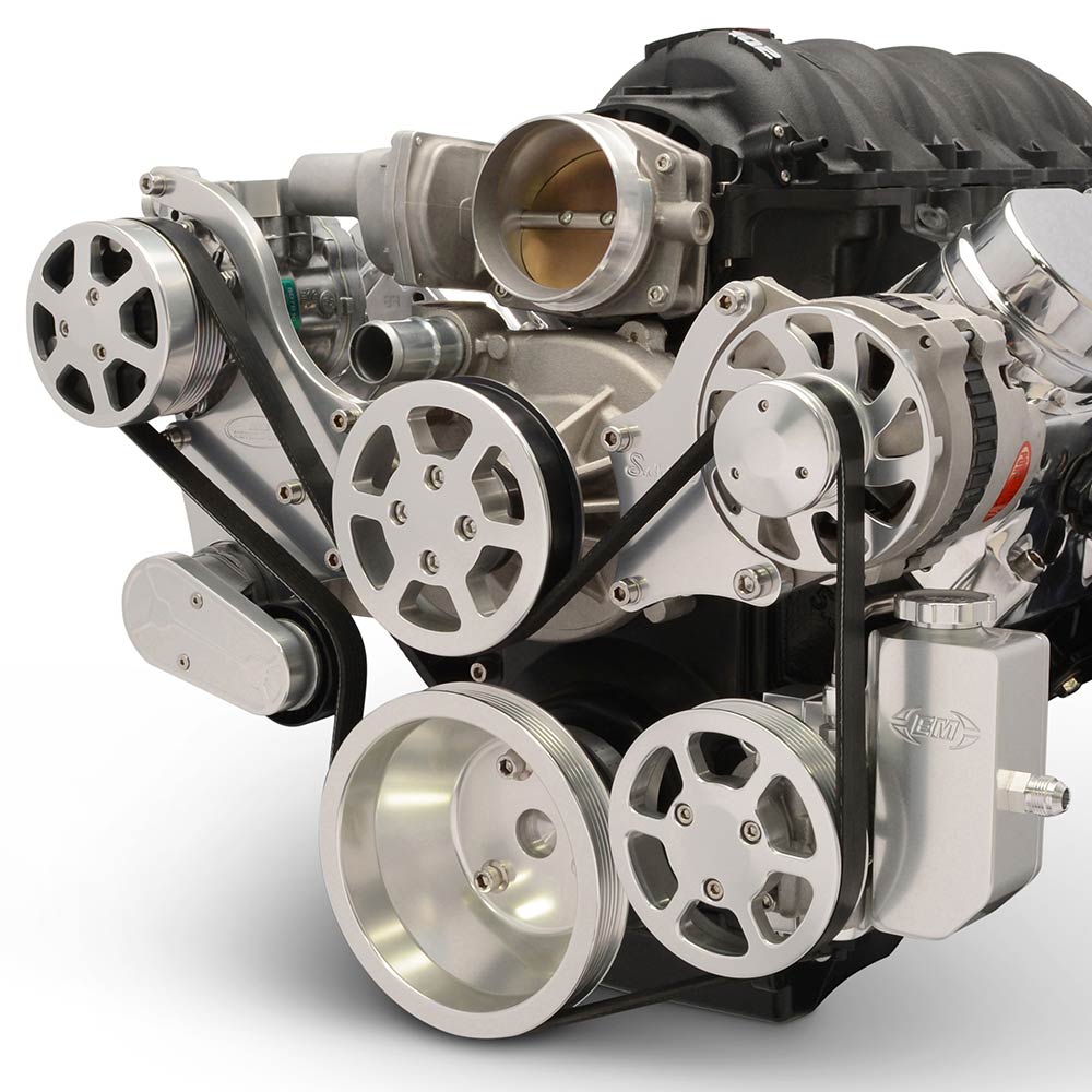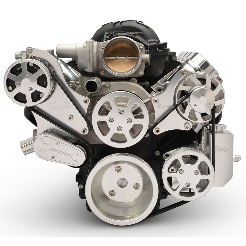 LS Chevy S-Drive Serp Pulley Kit w/Billet PS Res - Clr Anod