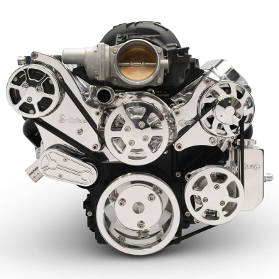 LS Chevy S-Drive Serp Pulley Kit w/Billet PS Res - Clr Coat
