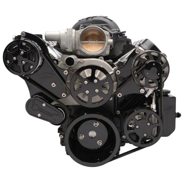 LS Chevy S-Drive Serp Pulley Kit w/Plast P/S Res - Gloss Blk