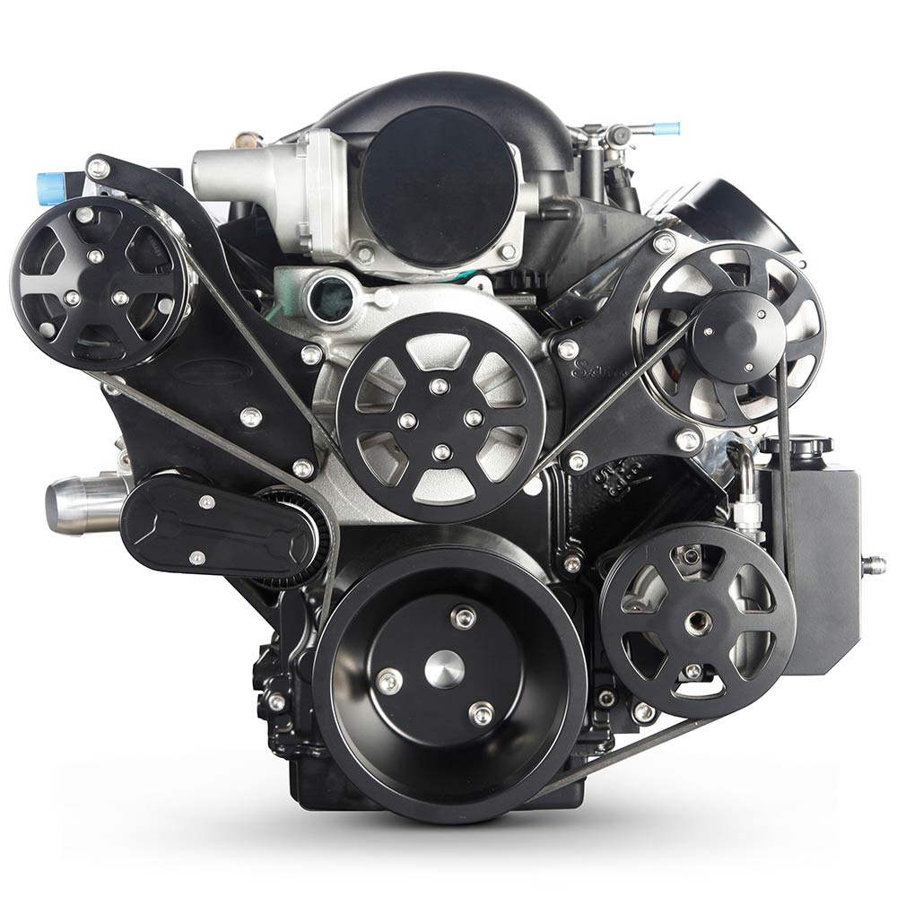 LS Chevy S-Drive Serp Pulley Kit w/Billet PS Res - Matte Blk