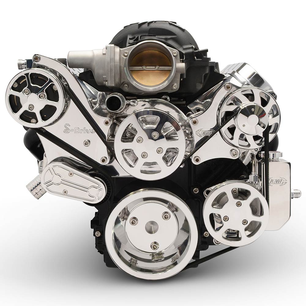 LS Chevy S-Drive Serp Pulley Kit w/Billet P/S Res - Polished
