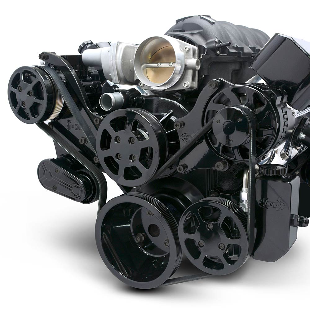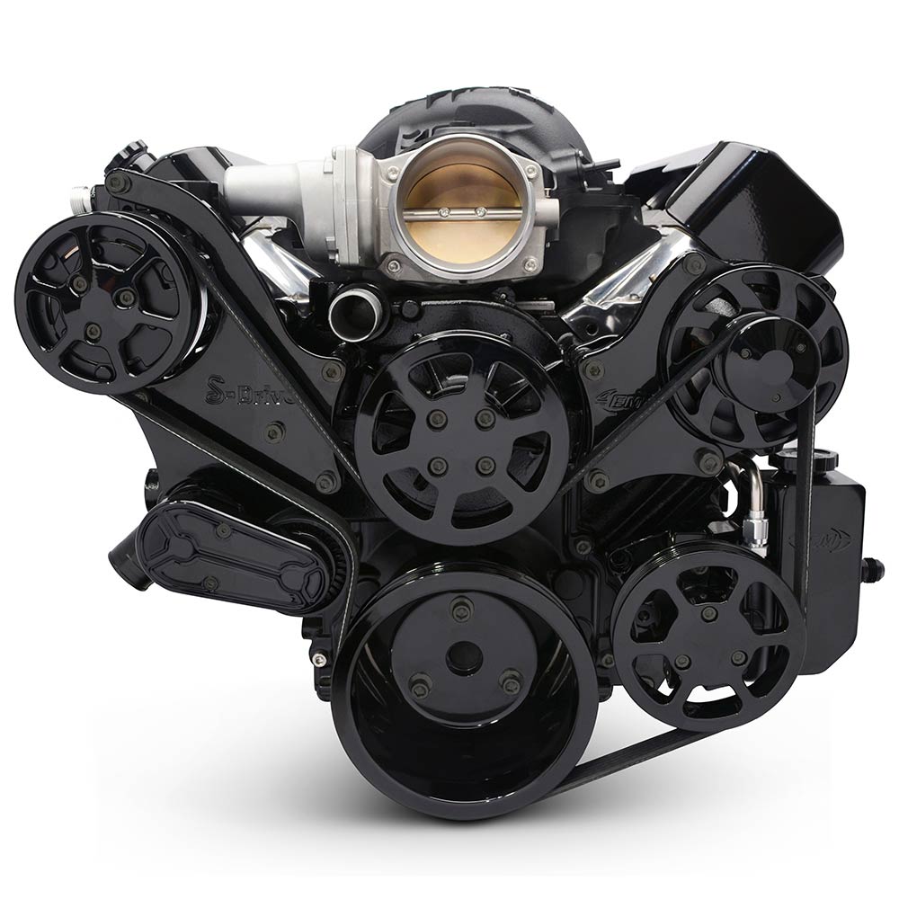 LS Chevy S-Drive 8-Rib Serp Kit w/Billet PS Res - Gloss Blk