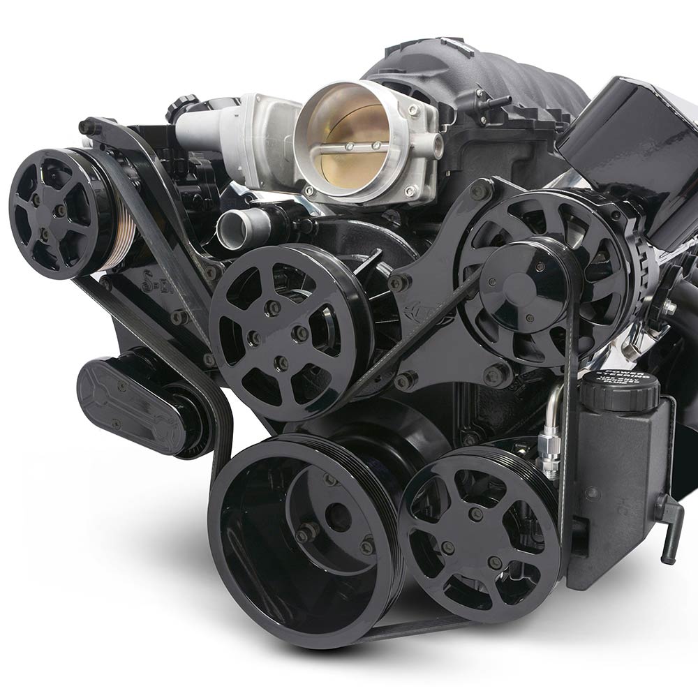 LS Chevy S-Drive 8-Rib Serp Kit w/Plastic PS Res - Gloss Blk