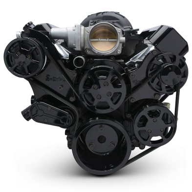 LS Chevy S-Drive Serp Kit w/Remote P/S Res - Black Anod