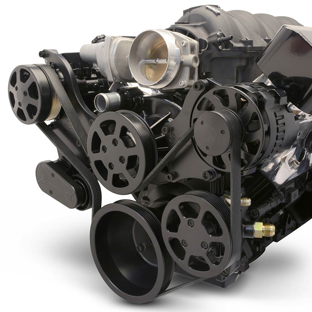LS Chevy S-Drive Serp Kit w/Remote P/S Res - Matte Black
