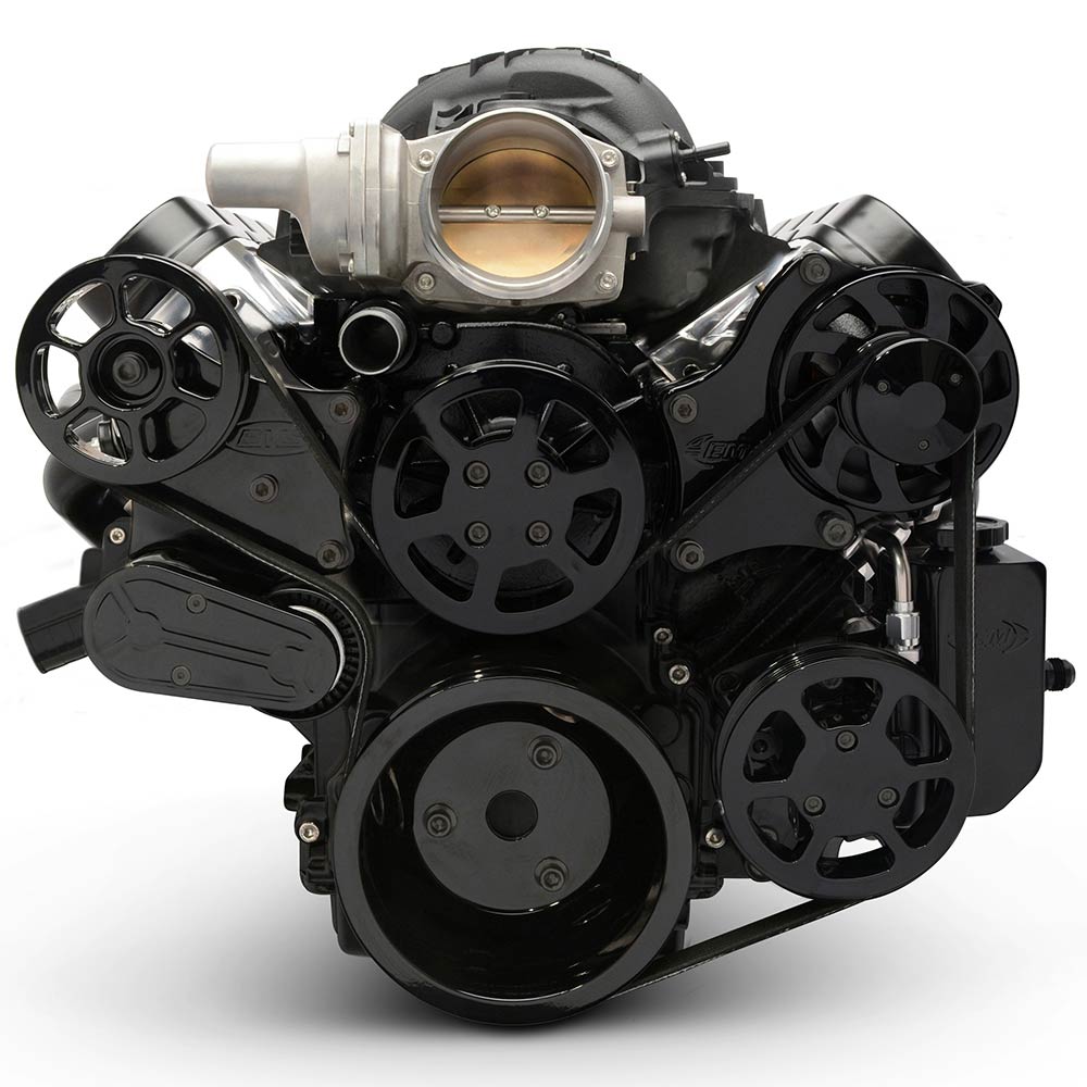 LS Chevy S-Drive 8-Rib Serp Kit wo AC w/Billet Res Matte Blk