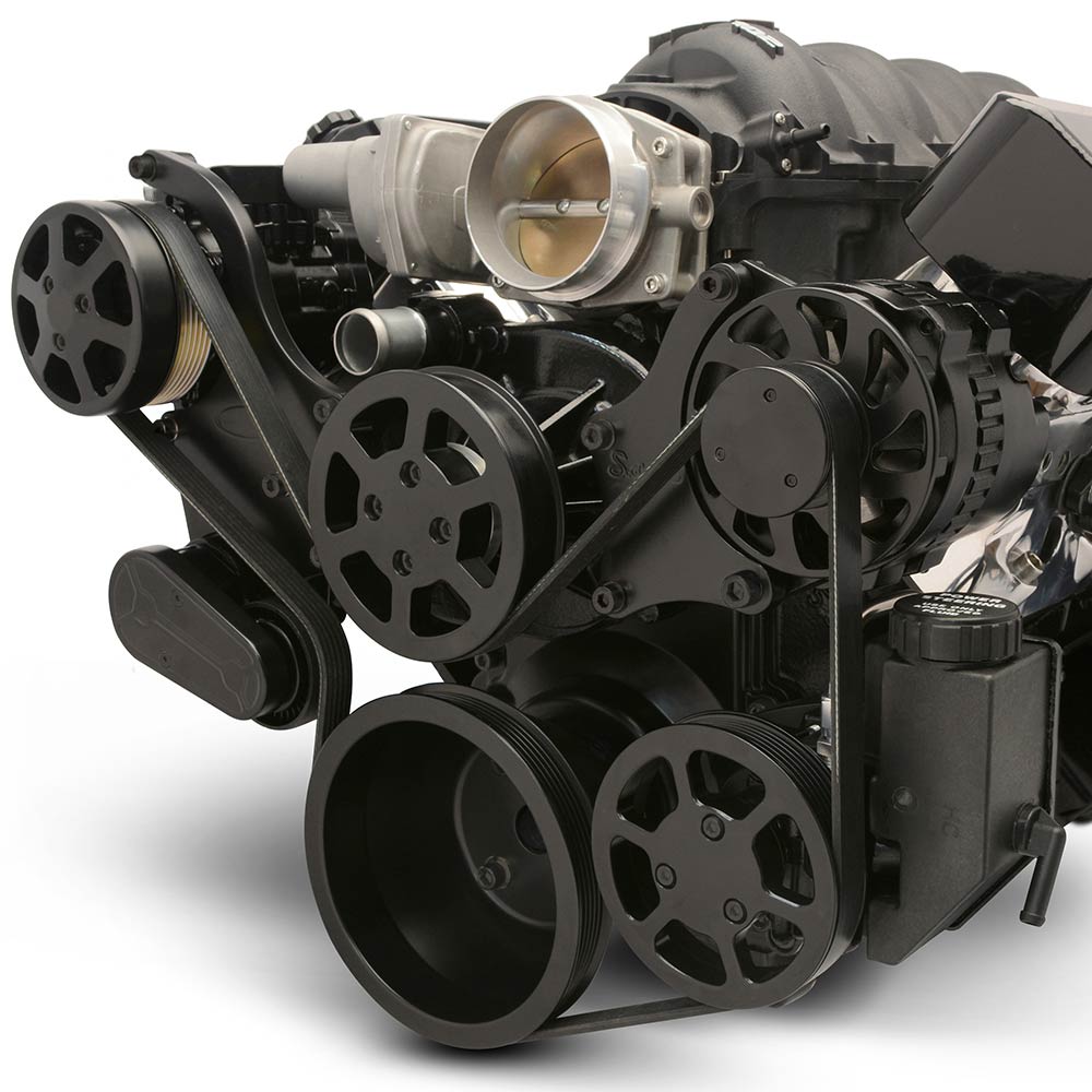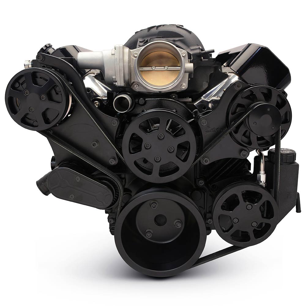 LS Chevy S-Drive Serp Kit w/Plastic P/S Res - Matte Black