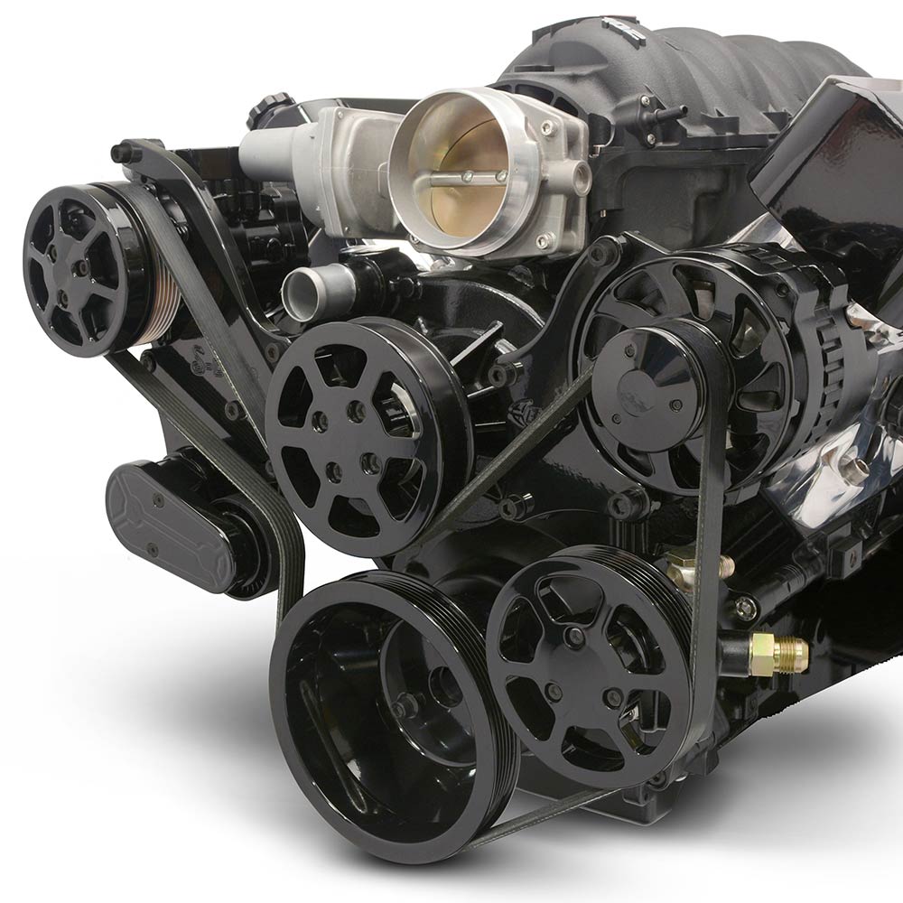 LS Chevy S-Drive Serp Kit w/Remote P/S Res - Black Anod