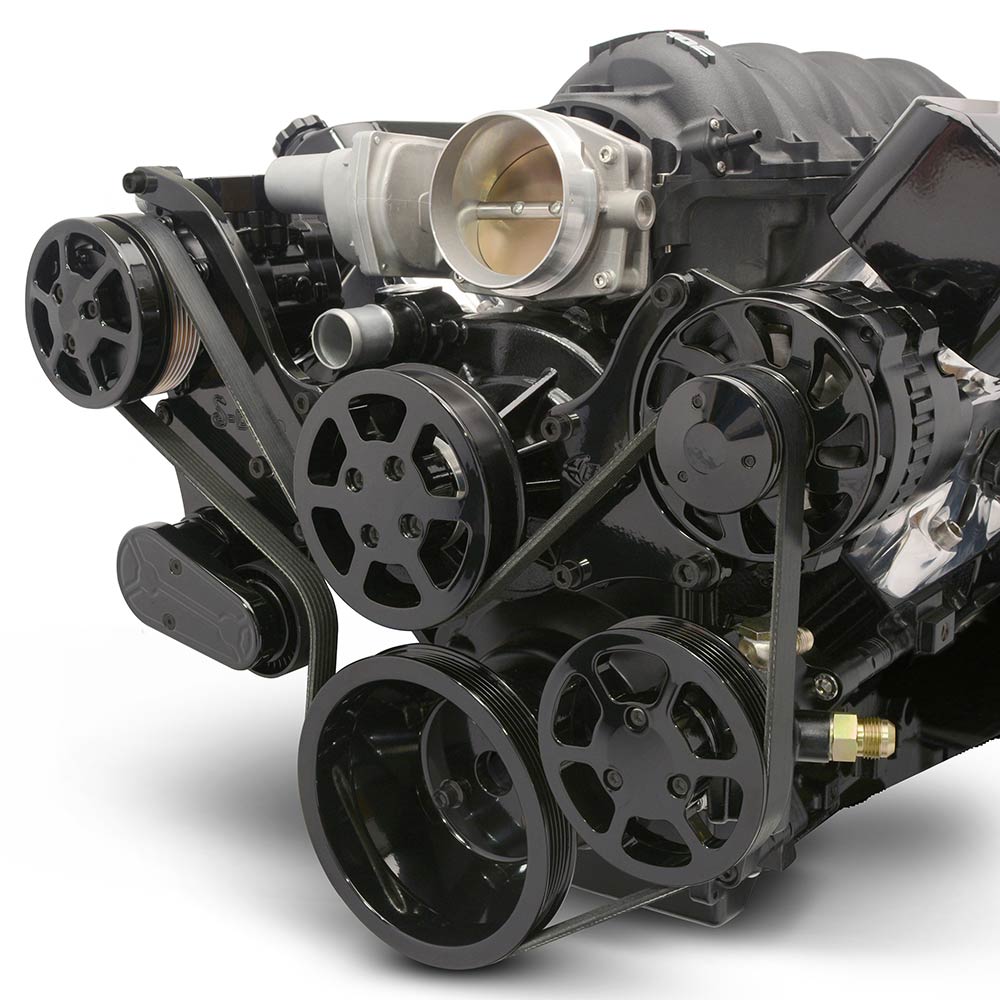 LS Chevy S-Drive Serp Kit w/Remote P/S Res - Gloss Black