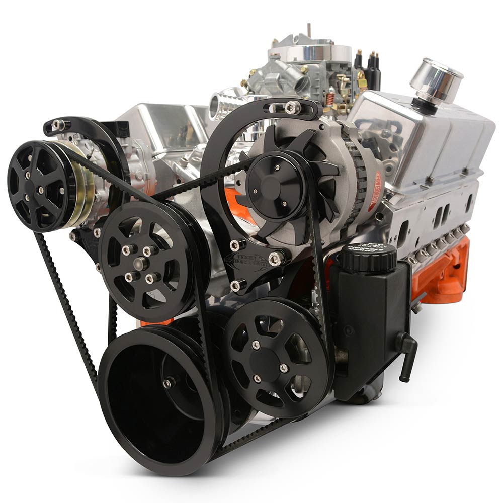 SB Chevy V-Drive Pulley Kit w/Plastic Reservoir - Black Anod