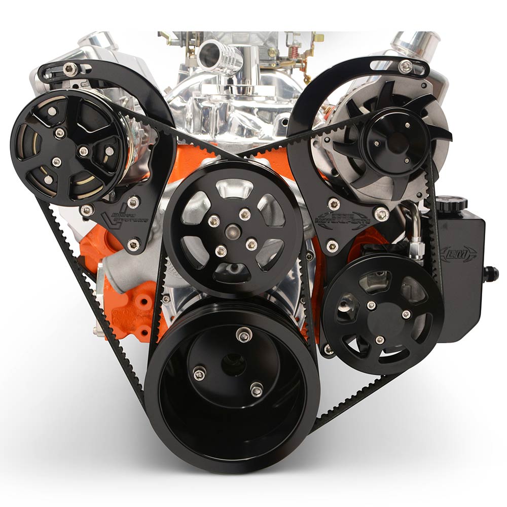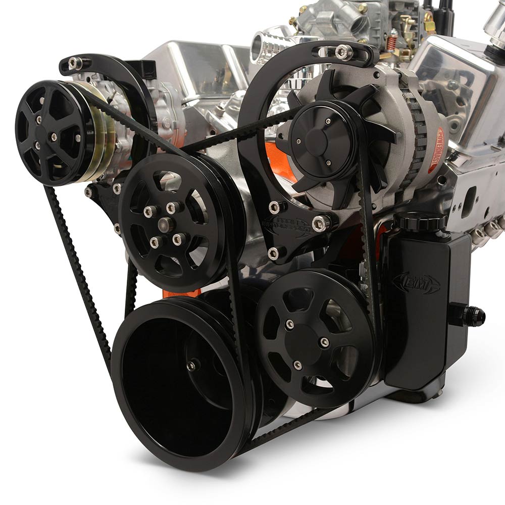 SB Chevy V-Drive Pulley Kit w/Billet Reservoir - Black Anod