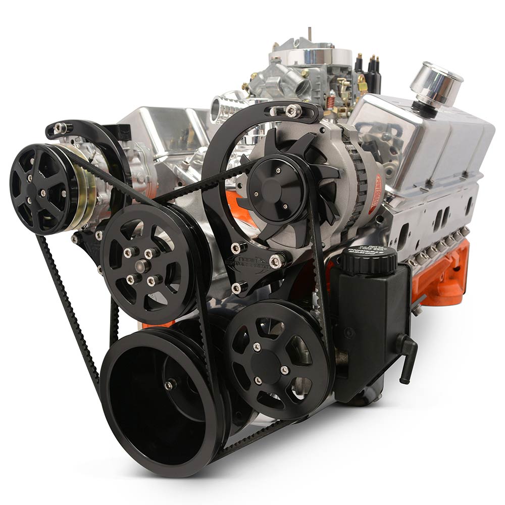 SB Chevy V-Drive Pulley Kit w/Plastic Reservoir - Gloss Blk