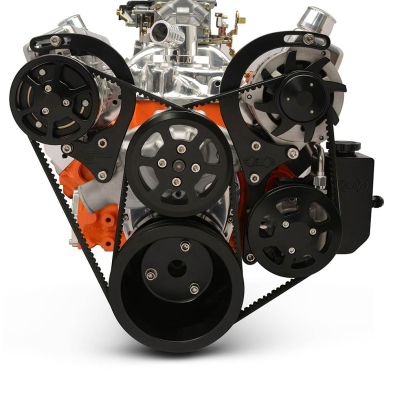 SB Chevy V-Drive Pulley Kit w/Billet Reservoir - Matte Black