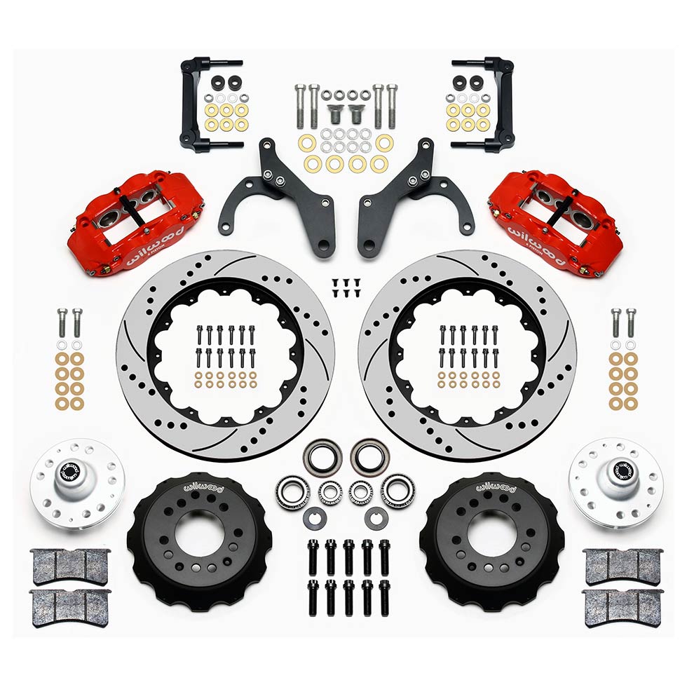1959-64 Impala 63-64 Vette 14" Drilled Front Brake Kit - Red