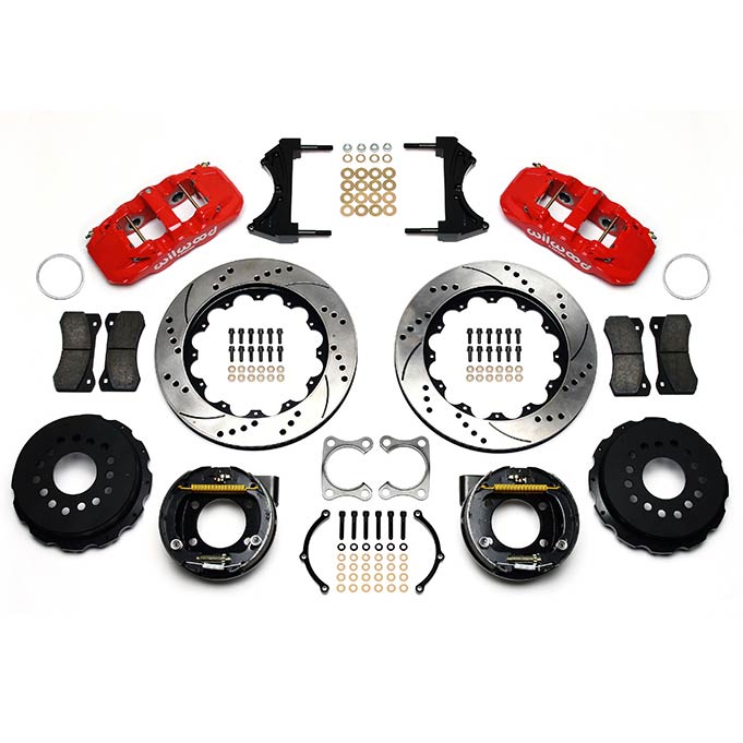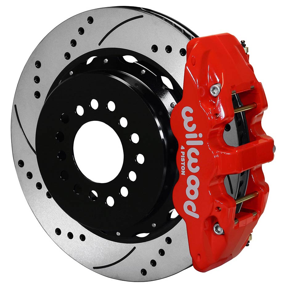 Ford 9" Big 2.36" O/S AERO4 14" Drill Rear P-Brake Kit - Red