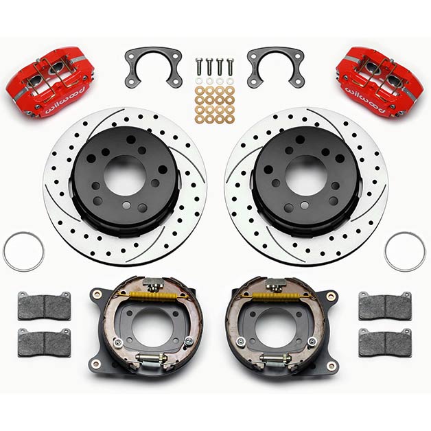 Small 9" Ford 12.19" Drilled 2.36" OS Rear Brake Kit - Red