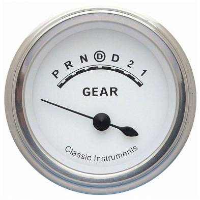 Classic White 21/8" Gear Selector Gauge with Overdrive SLF