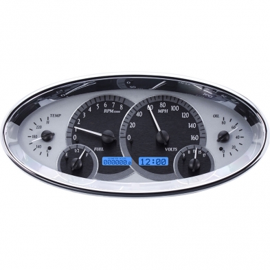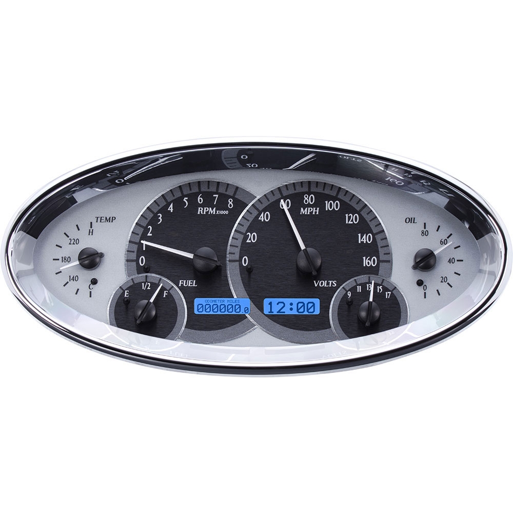 VHX-1017-S-B Universal 5.7" x 12" Oval Gauge Kit in Silver Alloy with Blue Illumination